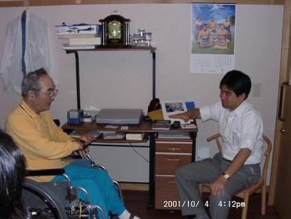 ワープロを叩くおじいさんの部屋を訪問し、話を聞かせてもらった。先日、厚生労働副大臣の桝屋敬悟衆議院議員が訪問されたそうで、記念写真があった。