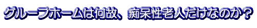 「グループホームには、なぜ痴呆性老人だけしか入居できないのか?頭は健康だが虚弱で、体の不自由なお年寄りは、グループホームには入れないのか?」