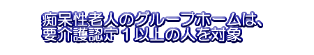 2000年4月1日から介護保険が導入されましたが、グループホームに入れるのは、要介護1以上に認定された痴呆症のお年寄りが、利用することが出来ます。