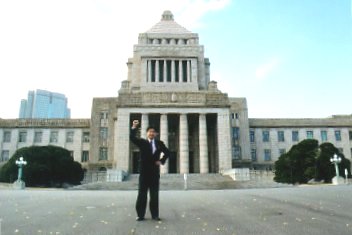 この表紙の写真を撮るために、当選後の初登院(2000年7月4日)以来、一年半ぶりに国会議事堂の前に立ち、改めて、自分の初心を問い直しました。