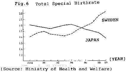 The social welfare expenditure per GDP is about one tenth in Japan compared to Sweden. So not only the elderly care expenditure but also the child care expenditure is very little in Japan. As a result, the number of new born babies has been decreasing in Japan. Fig.6 Total Special Birthrate