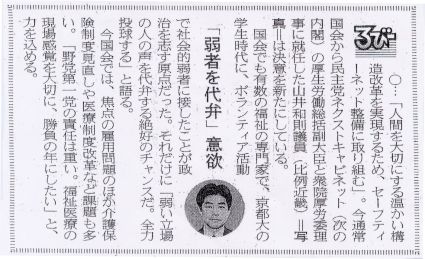 民主党の福祉・医療・労働政策のナンバー2です。まさに、民主党の政策に「温かさ」を入れ込む役職です。