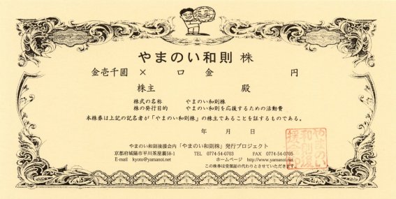 カンパを頂いた方には、領収書と記念の「やまのい和則株」をお送りさせて頂きます。