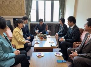 打合せの前に、宇治抹茶を私が点てて、7人の議員で飲みました。