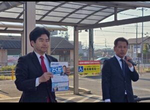 今朝6時40分から7時半、大野さんと『子ども食堂』を運営する徳田たかひとさんと、祝園駅で駅立ちをしました。