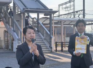 今日は、朝6時40分から7時30分、大野みどり町議と徳田たかひとさんと、祝園駅で駅立ちをしました。