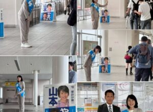 『山本わか子さん、祝園駅で朝の駅立ち』