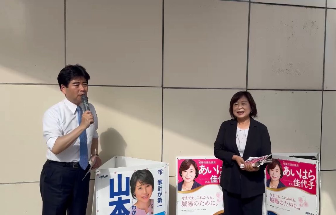 今朝23日(月)は、朝7時から8時、JR城陽駅で、相原さんと駅立ち。