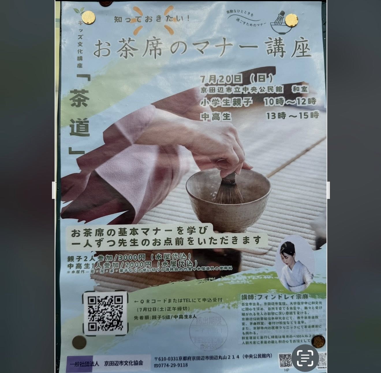 『お茶席のマナー講座、7月20日(日)中央公民館』