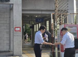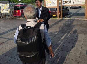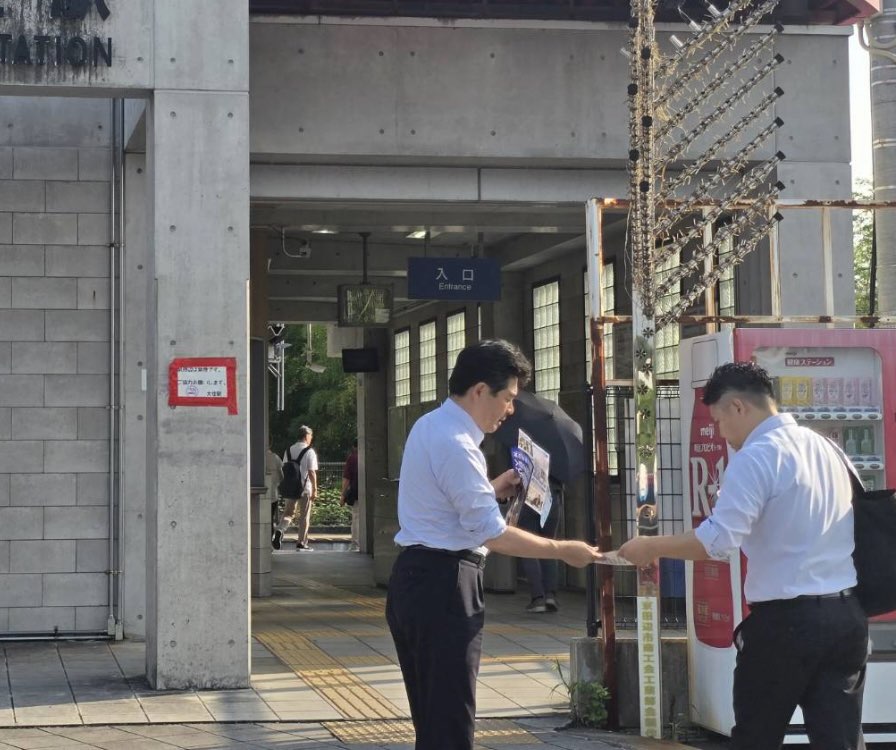 猛暑の中、朝7時から8時、大住駅で、立憲民主党の政策を、地声で訴えました。