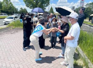猛暑の中、『山本わかこさん』の今日のスポット演説には、それぞれ数十人の方々が、『山本わかこさん』の演説を聞きに、また、激励をするために、お越し下さいました。