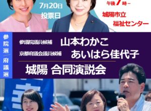 また、城陽では、人気が高い、相原佳代子府会議員候補との合同演説会を行いました。