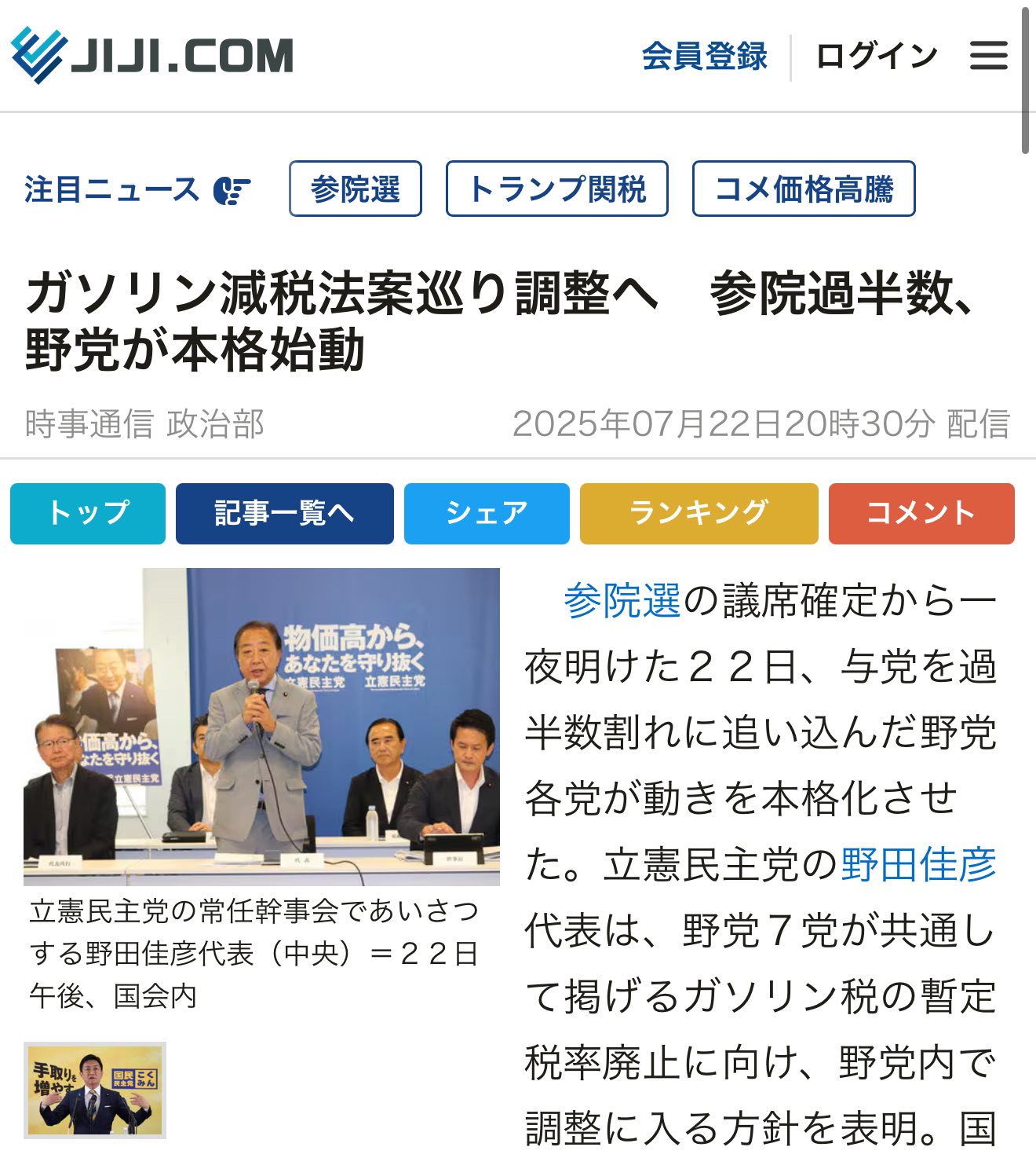 選挙は終わりましたが、これから、連日、ガソリン暫定税率廃止法案(ガソリン25円値下げ法案)の提出に向けての各党との交渉や調整があり、忙しいです。