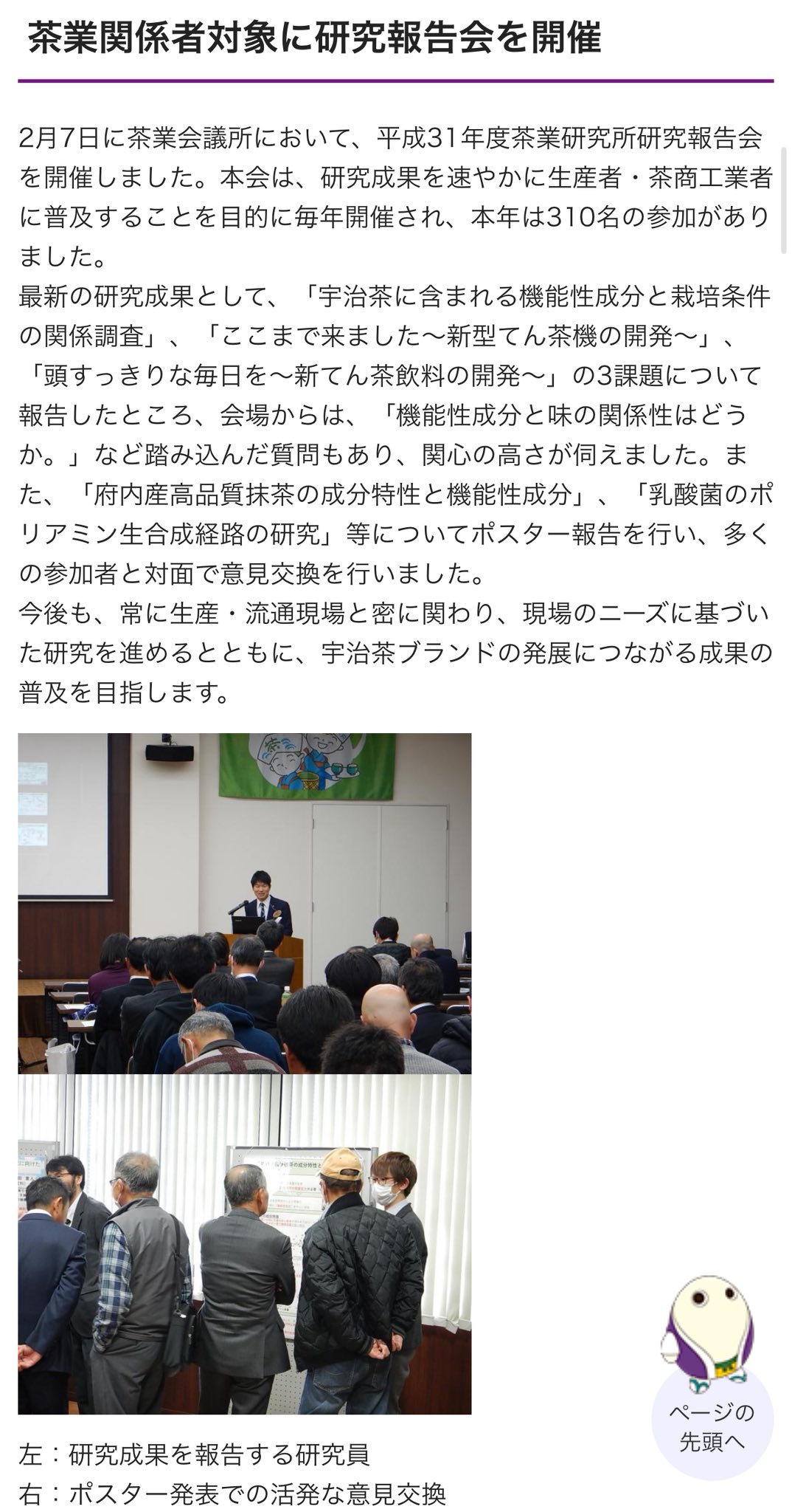 この研究結果が、2020年2月7日に、添付のように茶業関係者に報告されました。