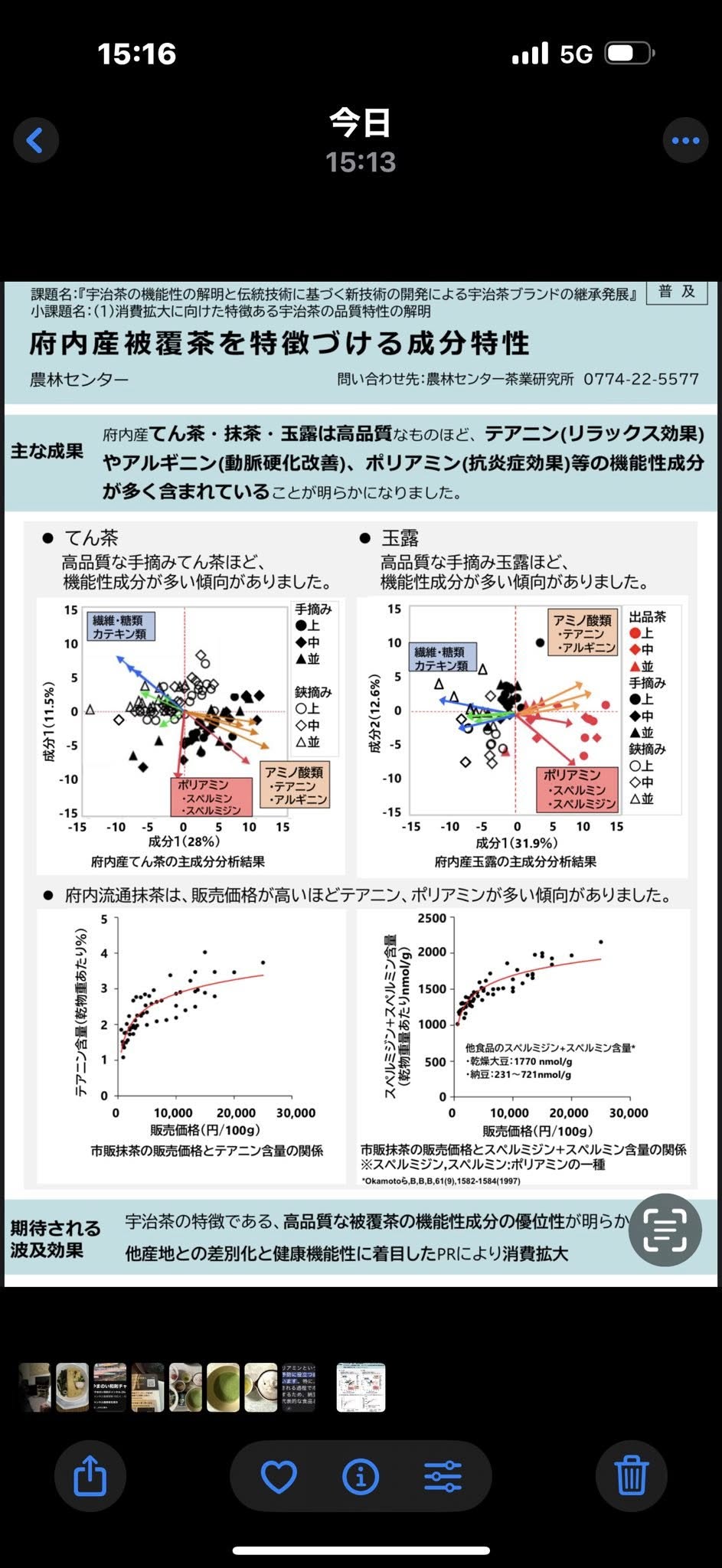 つまり、被覆茶の高品質の抹茶や玉露は、うまみたっぷりで、美味しいだけでなく、リラックス効果のテアニンや、老化予防、抗炎症効果のポリアミンが多く含まれ、健康に良いということが、この研究により、明らかになりました。