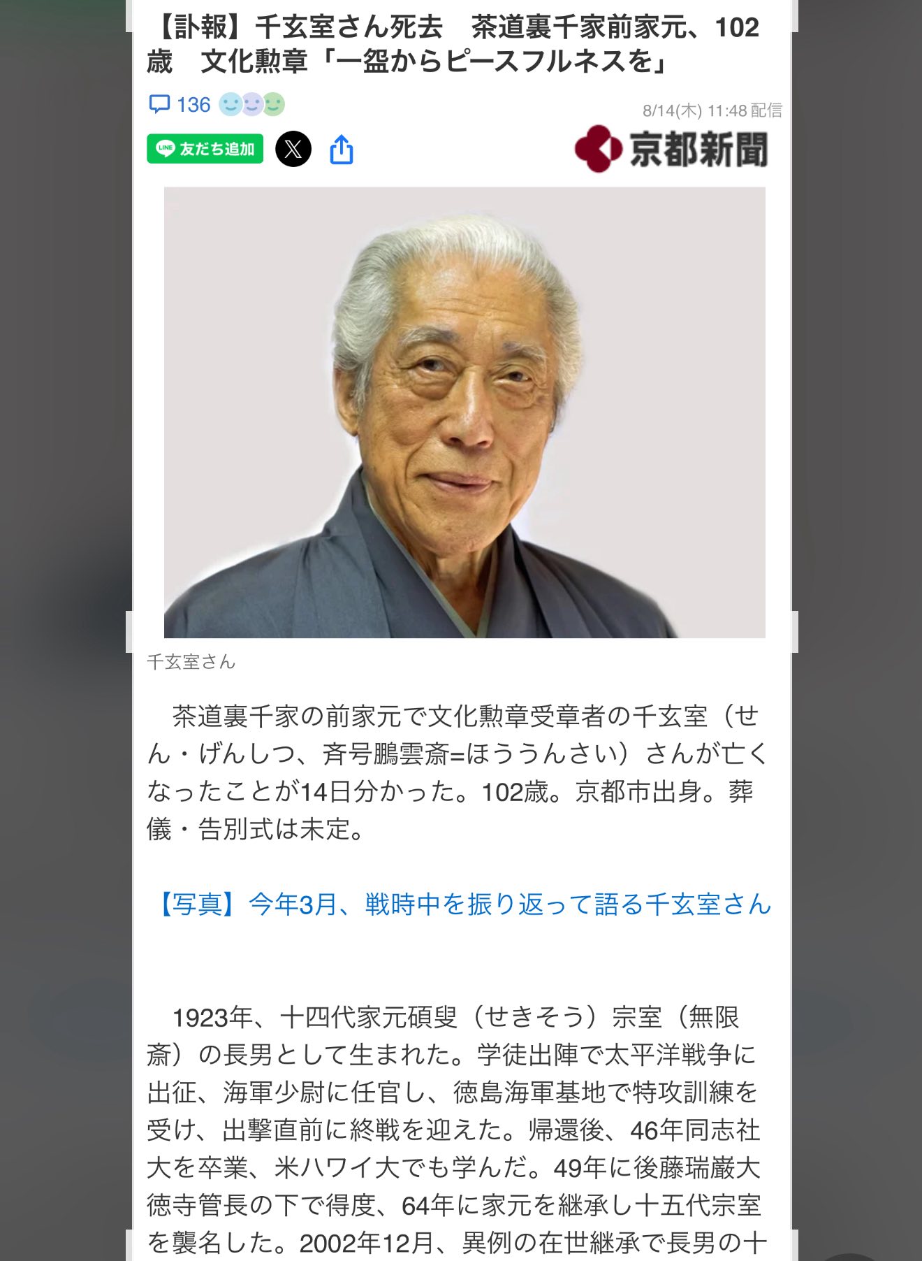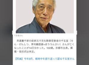 『訃報』千玄室さん死去、裏千家前家元