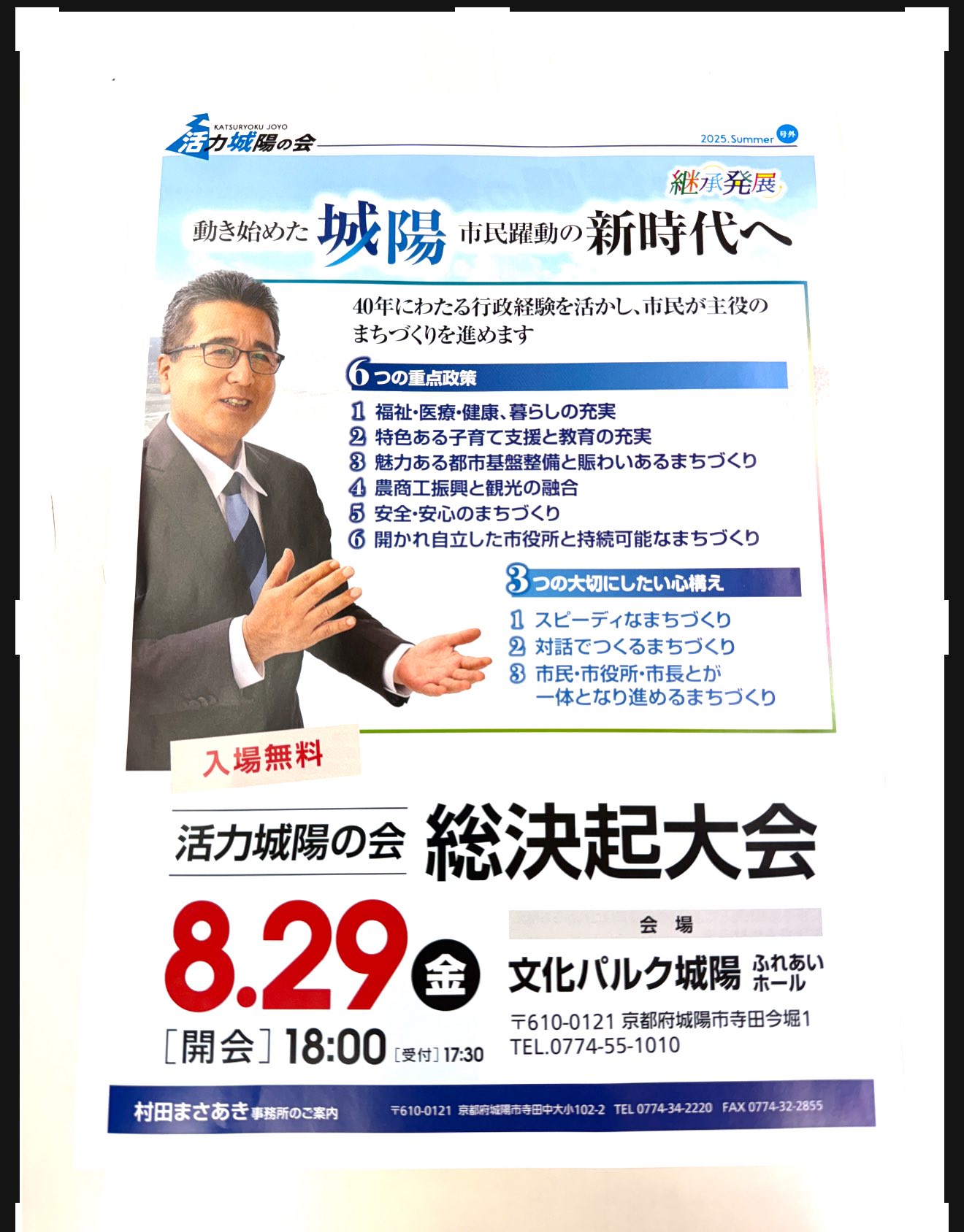 『村田まさあき』決起集会(文化パルク城陽にて)