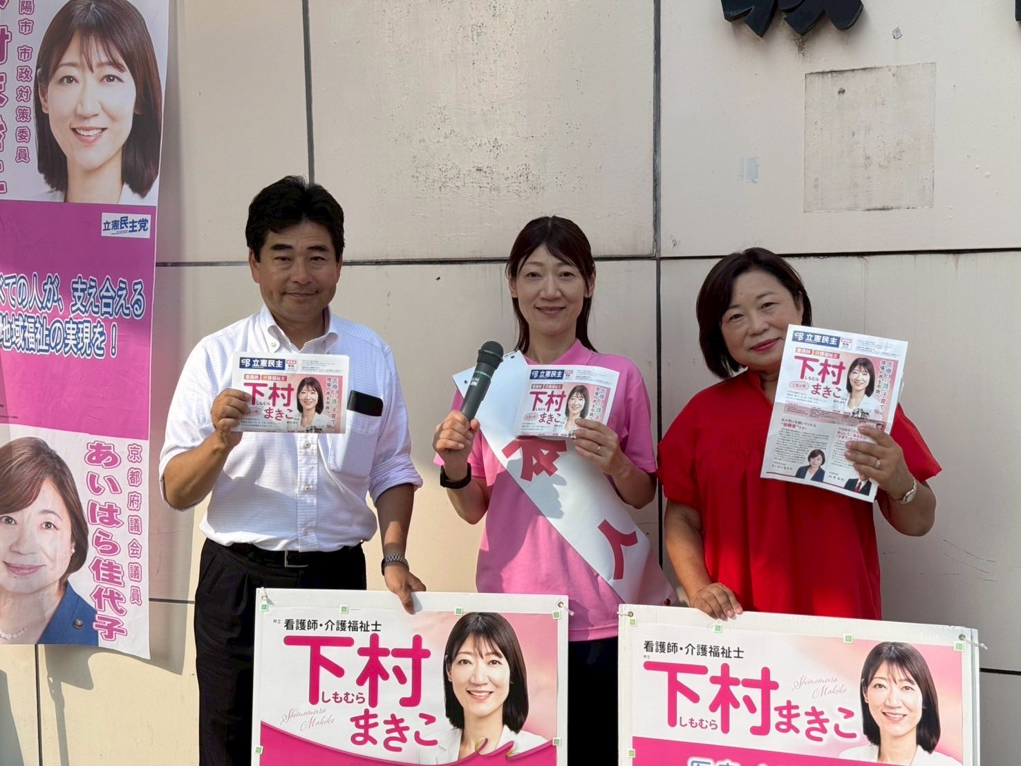 昨朝7時〜8時、JR城陽駅で、『下村まきこ』さんと、あいはら府議と駅立ちをしました。