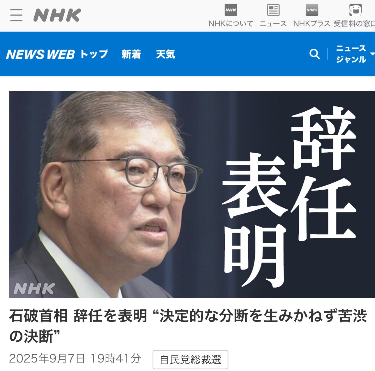 あまりにも物価高対策に無策であった石破首相の辞任は当然ですが、しかし、それにより、さらに、物価高対策や経済対策の補正予算が遅れ、国民不在、国会閉会の状況が続くのは、何としても最小限にせねばなりません。