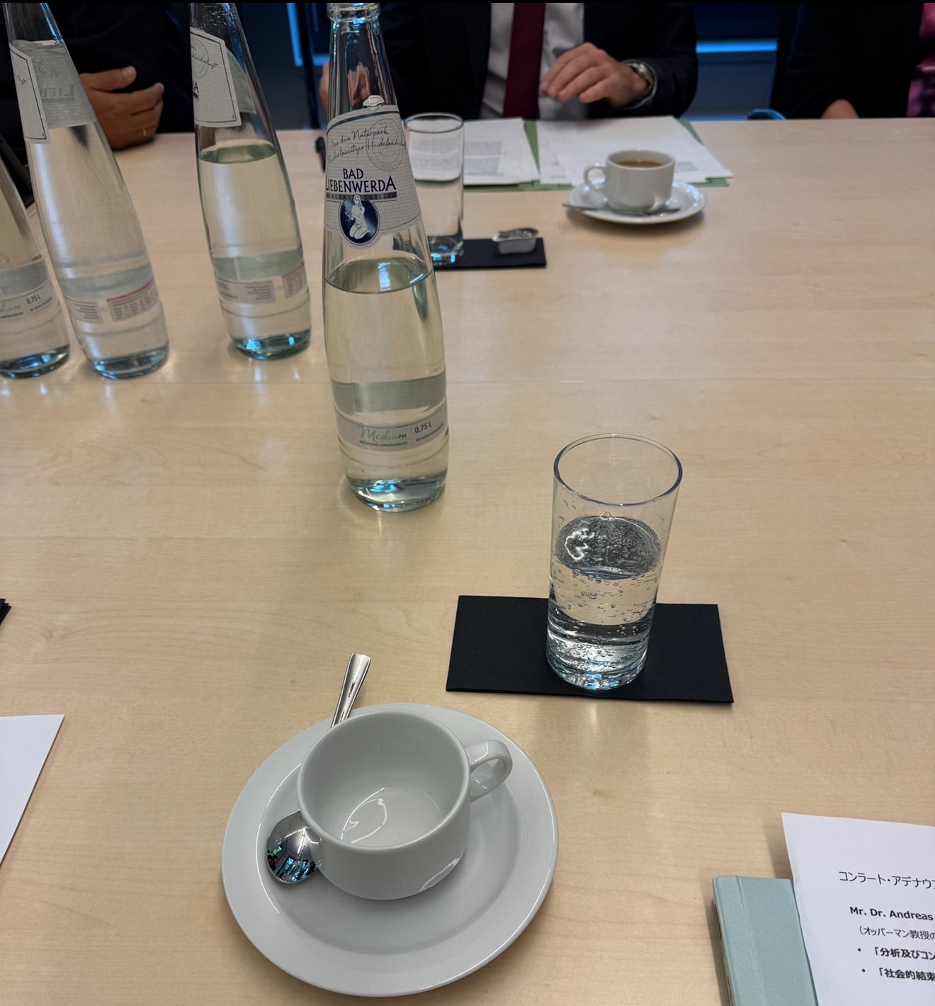ちなみに、ドイツでは、会議の飲み物は、すべて瓶入りで、ペットボトルや缶の飲み物はありません。