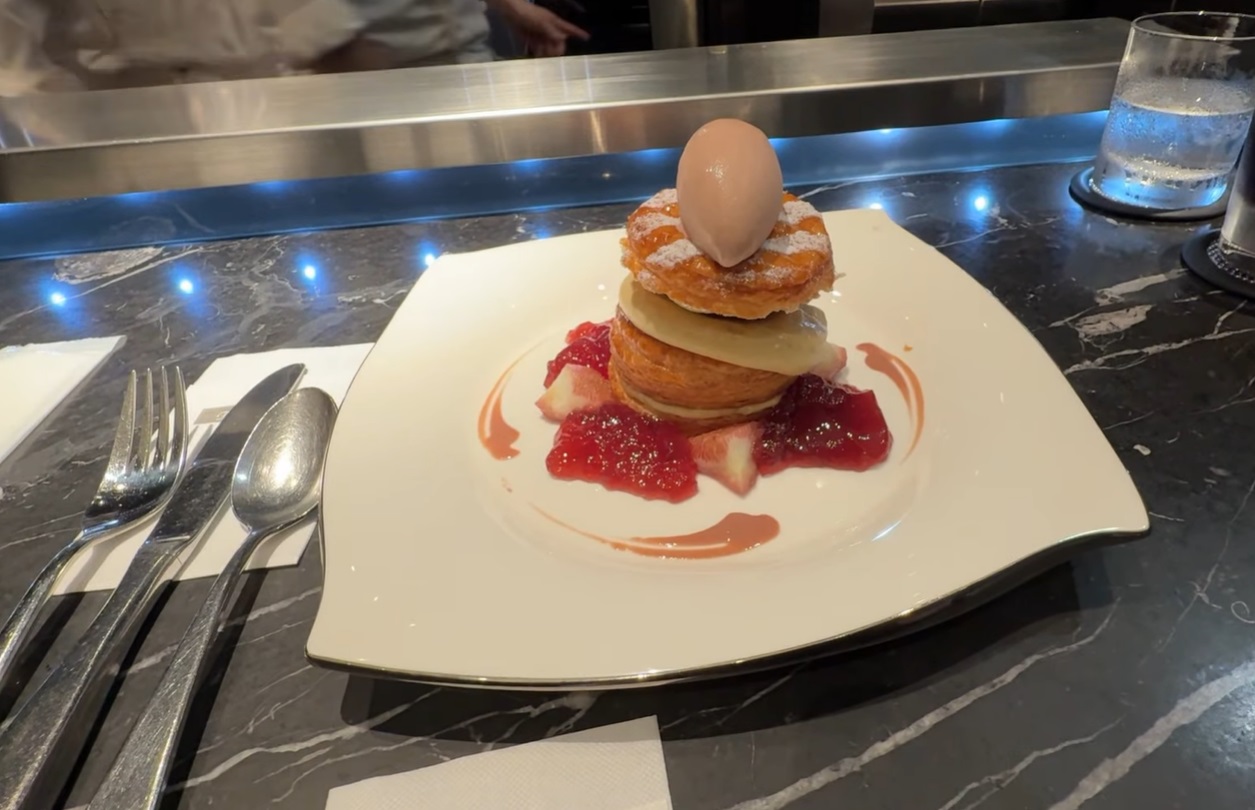 店内のカウンターで、トシ・ヨロイヅカ、プロデュースの『いちじくミルフィーユ』を食べました。