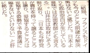 『日本の国会では、与野党の協議、責任感あるお互いの譲り合いにより、予算を早期に成立させるべき!』