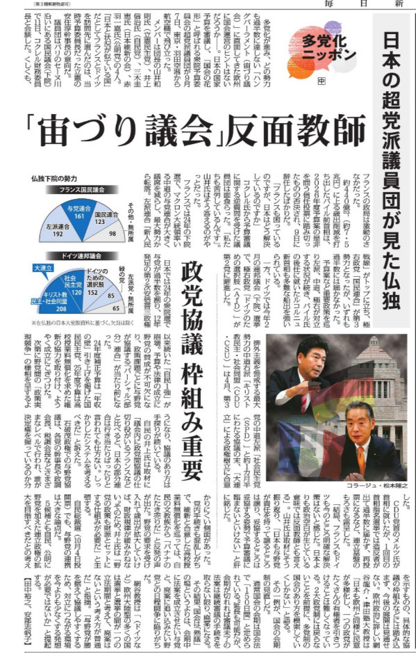 毎日新聞(朝刊9月30日)に、先日の海外視察についての私のインタビュー記事が出ました。