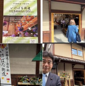いけばなの素晴らしさを感じるイベントで、宇治橋通り商店街の各地で、いけばなが飾られています。