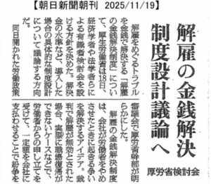 『解雇の金銭解決、政府が議論へ』(朝日新聞)
