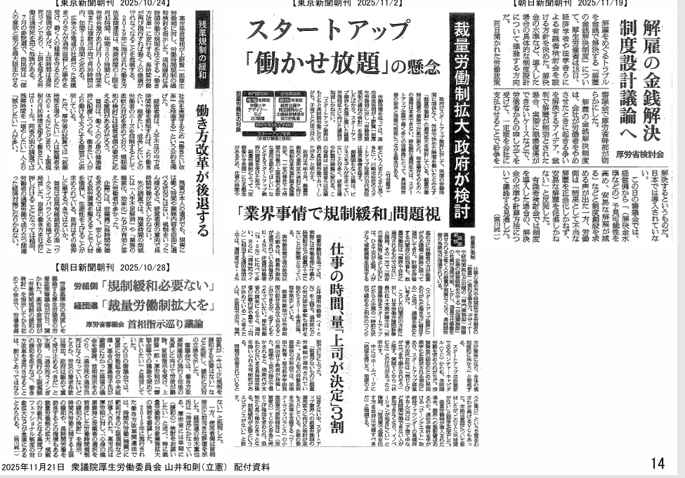 私は、ちょうど、当日に、上野厚労大臣に、『解雇の金銭解決、労働時間規制の緩和は、進めるべきでない!』