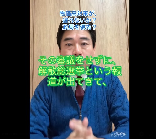 1月8日(木)から、私は国会に行き、仲間の議員と、新年度予算の審議の打合せをし、今週も、連日、物価高対策を検討する会議が、国会で予定されています。