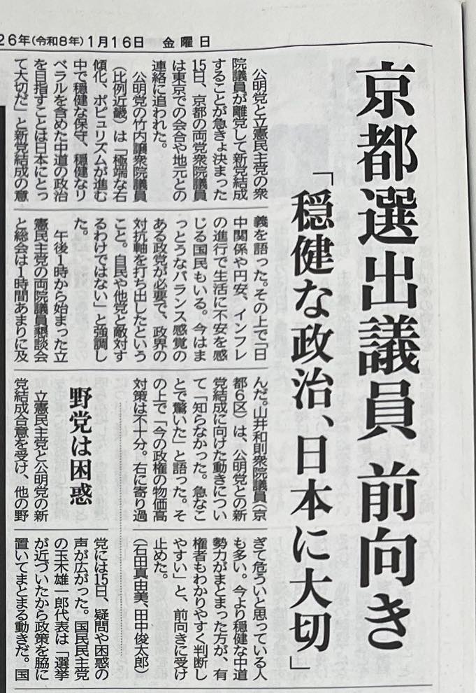 新党への京都新聞の、私のコメント〜