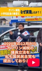 でもご存知かと思いますが、2021年の12月に「ガソリン減税の議員立法」を私も国民民主党も提出しておりました