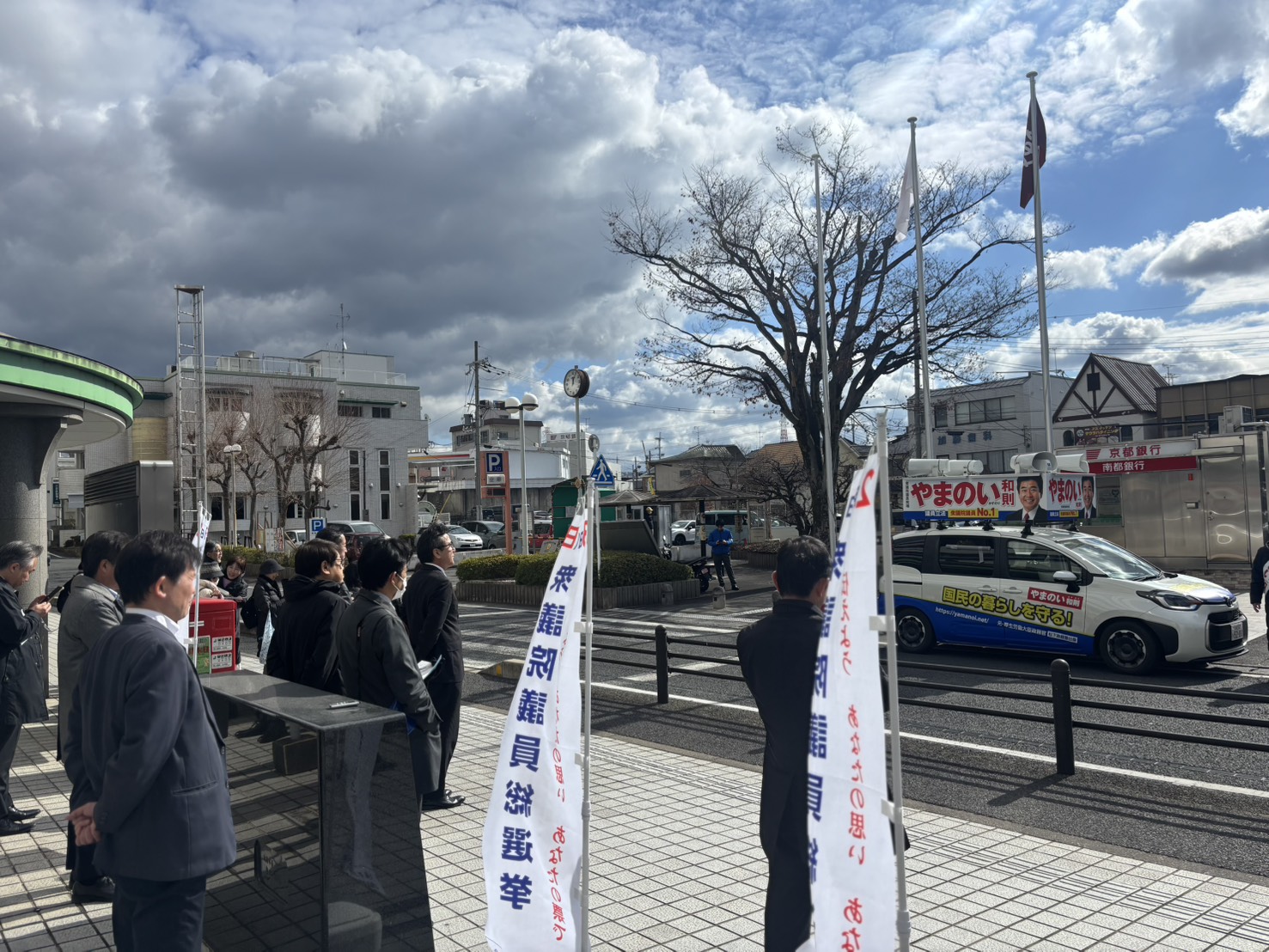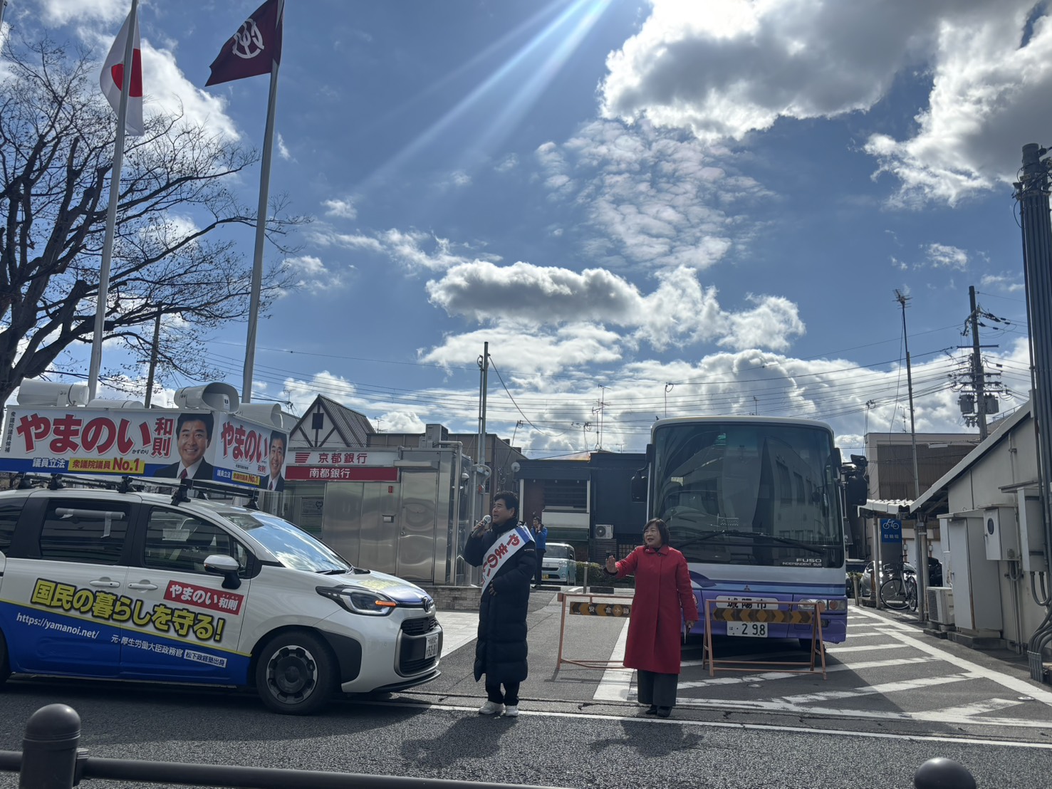 その後、選挙カーで回り、井手、宇治田原、城陽で、スポット演説をします。
