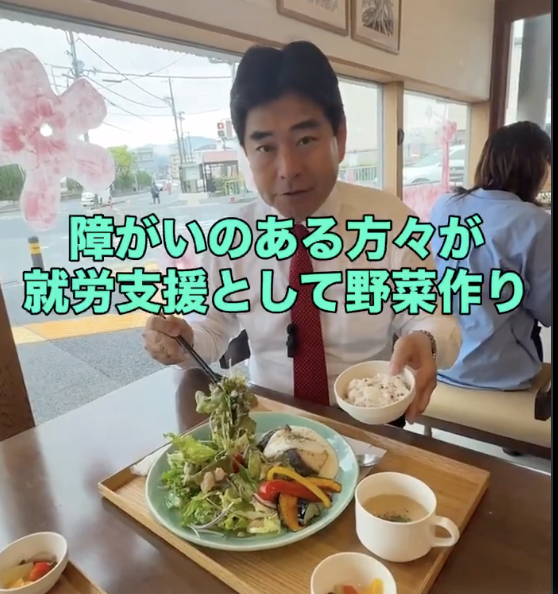 山井の活動 2026.4.10 カフェ『さぴゅいえ』@宇治パルティール前 〜障がいのある方々の就労支援施設〜 障がいのある方々が、野菜づくり。 『さぴゅいえ』は、南山城学園の就労支援施設であり、障がいのある方々が作られた美味しい野菜がたっぷりのランチを食べました。