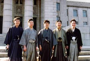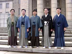 通常国会の初日には、和装議員連盟のメンバーは着物を着て国会に出て、天気が良ければ議事堂の前で写真を撮るのが恒例になっています。