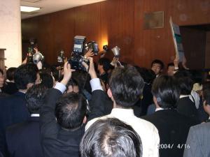 昨日発生した、イラクでの3人の日本人誘拐事件への対応の重要性と、期限が3日以内となっている状況を鑑みて、民主党は政府に、日程が遅れないよう最大限協力するから、今日の小泉総理出席での厚生労働委員会開催は中止してもよい旨を申し入れましたが、小泉総理が「その必要はない」と拒否したため、委員会は開かれるこおtになりました。